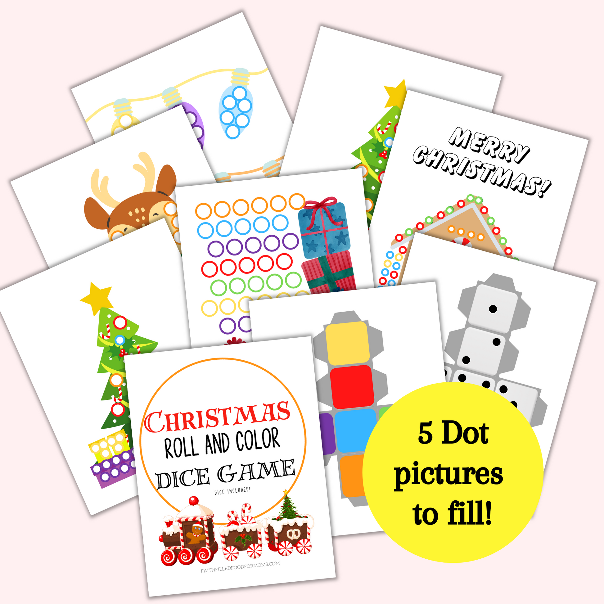 Delight your little ones this holiday season with this Christmas Roll and Color Dice Game! This festive game encourages learning while having loads of fun! Roll the colored dice then roll the numbered dice and color away! An interactive way to celebrate the season. Perfect for playdates or family game nights!