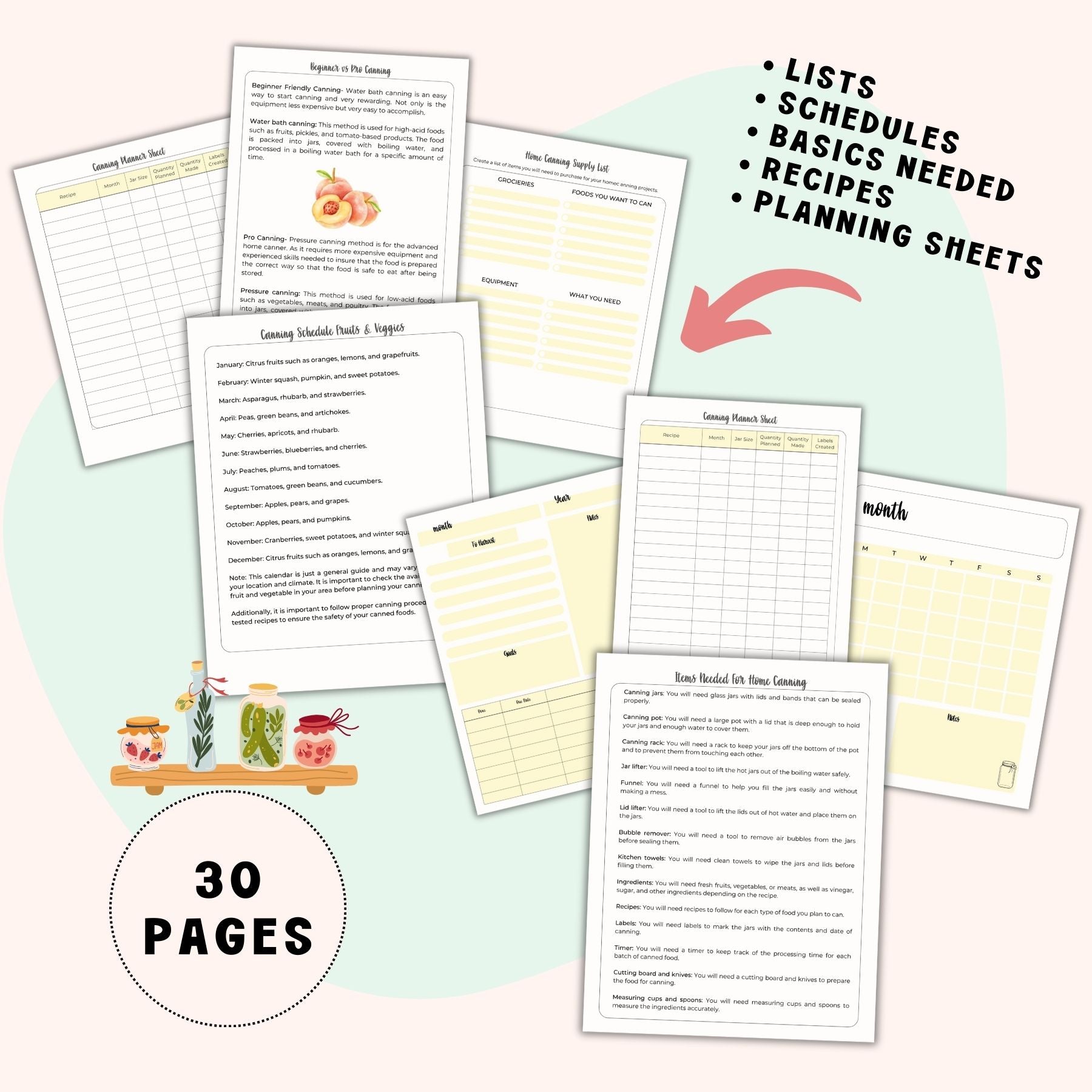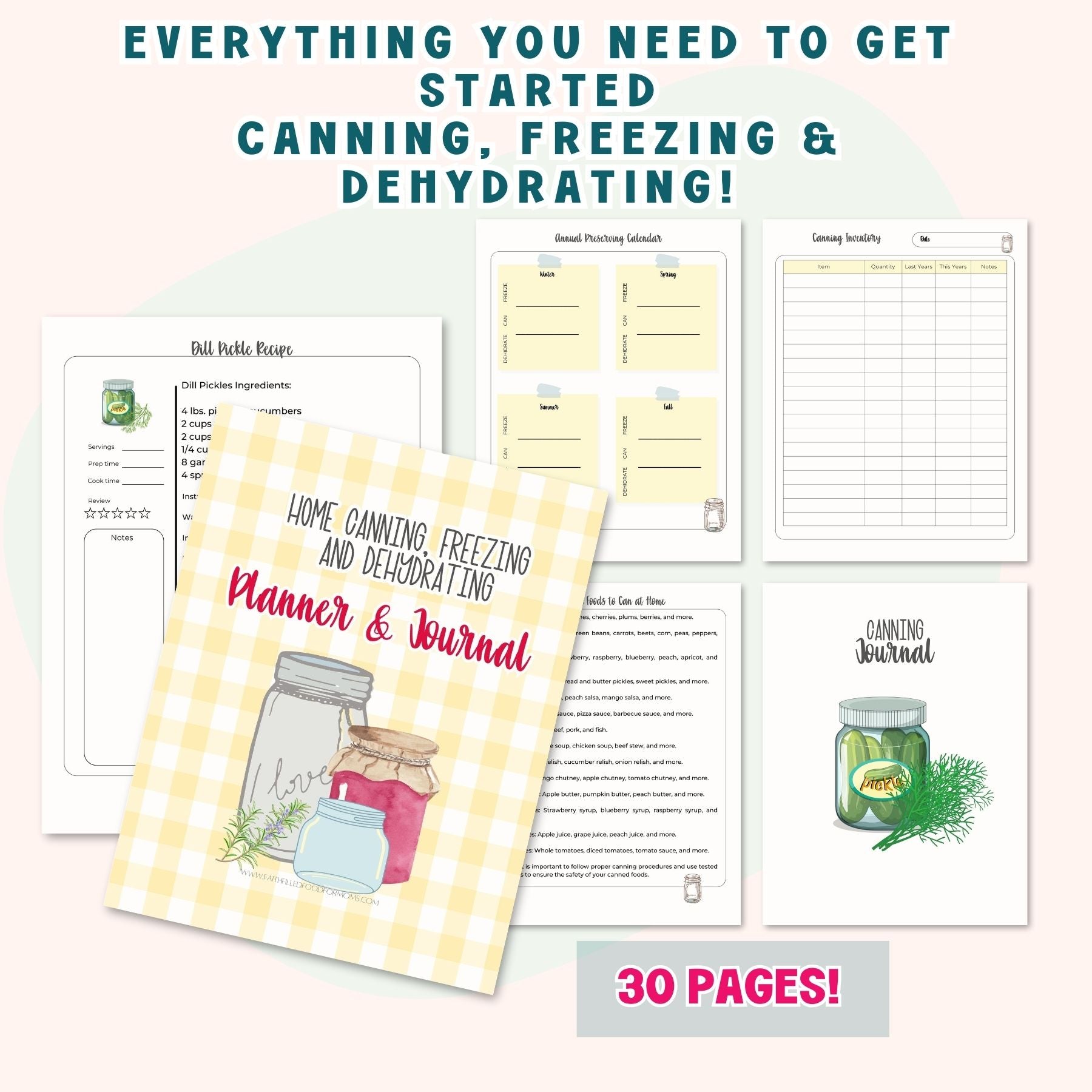 This is a basic guide to get you started on your preserving journey. This is not a comprehensive guide with step-by-step instructions on the mechanics of preserving. However, it DOES have 30 pages of very important and useful printables with lists, some how-to's, and basic canning terms and knowledge.