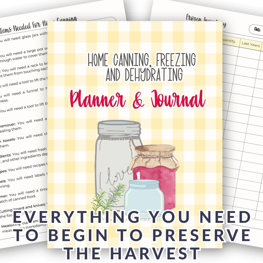 Easily preserve your garden's harvest with our Home Canning Planner & Journal! This user-friendly planner gives you all the basics you need, along with ideas for preserving seasonal fruits and vegetables. Included are 2 yummy recipes to get you started!