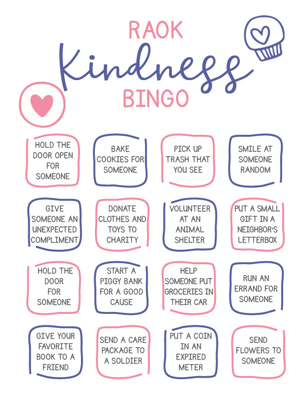 - One Blank Bingo Sheet to write in your own Acts of Kindness