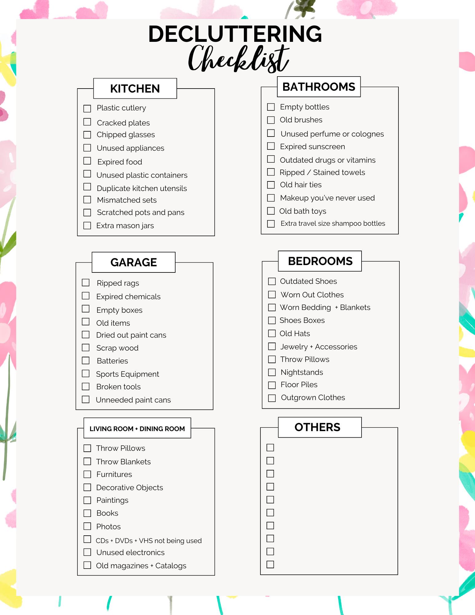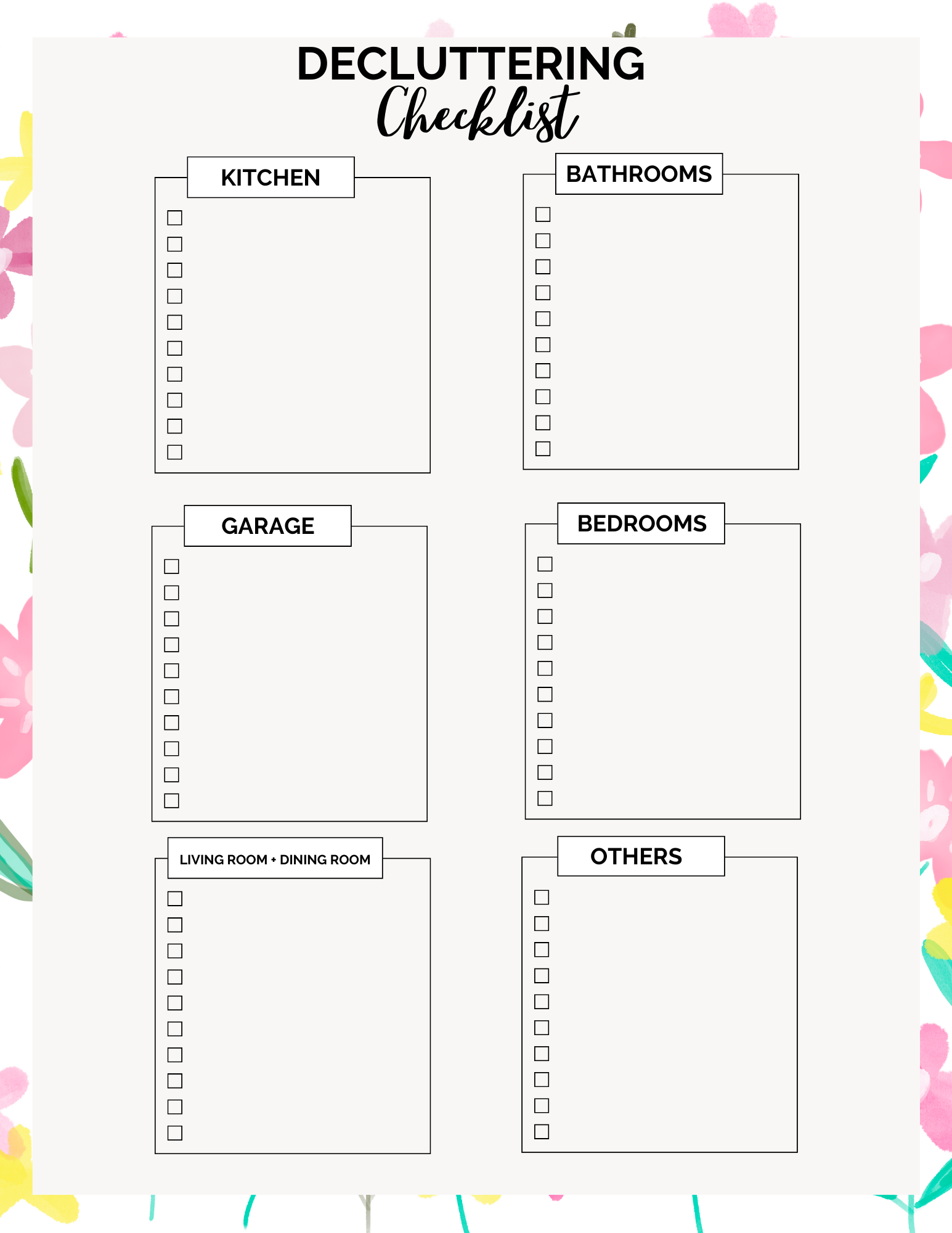 - 1 blank room-by-room page for you to fill in your declutter plan
